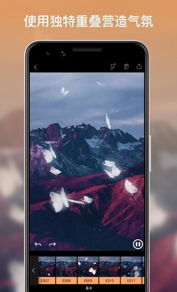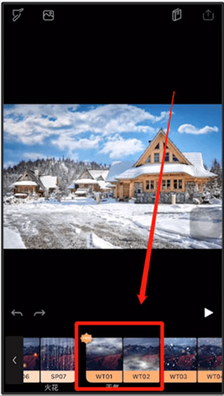 3、向左滑动屏幕,在天气分类中,挑选第一个或者第二个效果。完成选择后,照片的上方便会呈现出烟雾缭绕的效果。此外,还能够通过调整上方的进度条,以此来增强烟雾的强度。