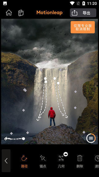 1、借助pixaloop在相片上添加特效,依照个人需求对轨道、锚定以及冻结进行设置。