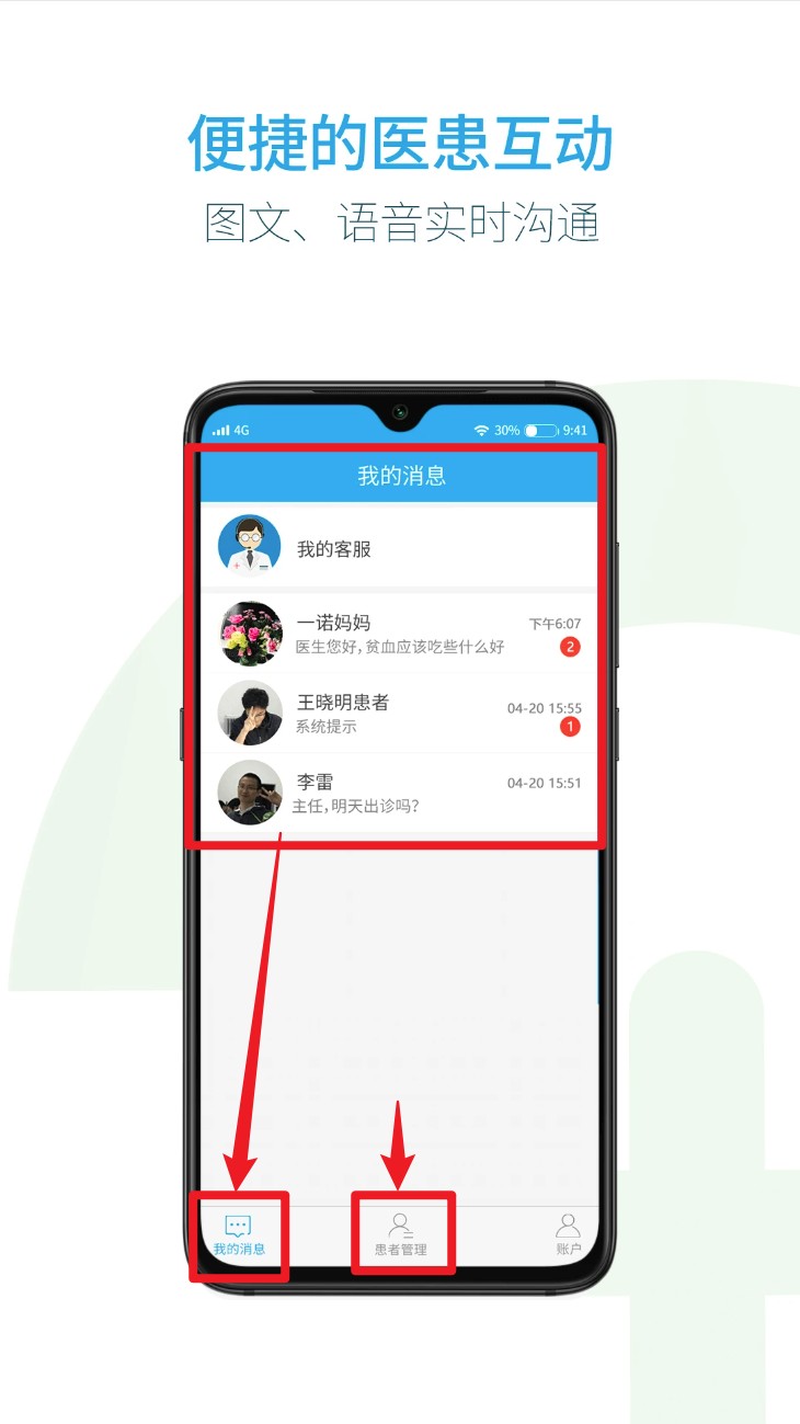 2. 通过语音、文字以及图片等形式展开医患沟通。