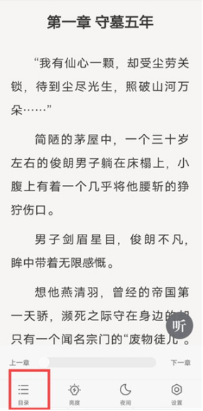 3、点击小说页面,它就会弹出功能框,点击目录;