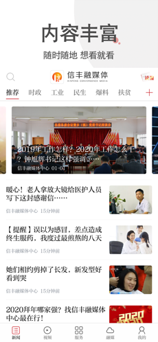 信丰融媒体APP设有推荐、时政、政务、便民、生活等诸多频道。