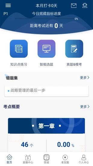 此外,还设有知识点练习、智能选题以及真题模考等功能板块。