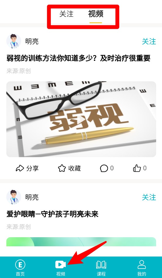 4、点击下方“视频”频道,即可观看专家讲解的护眼视频,从中获取更多科学的护眼训练方法。
