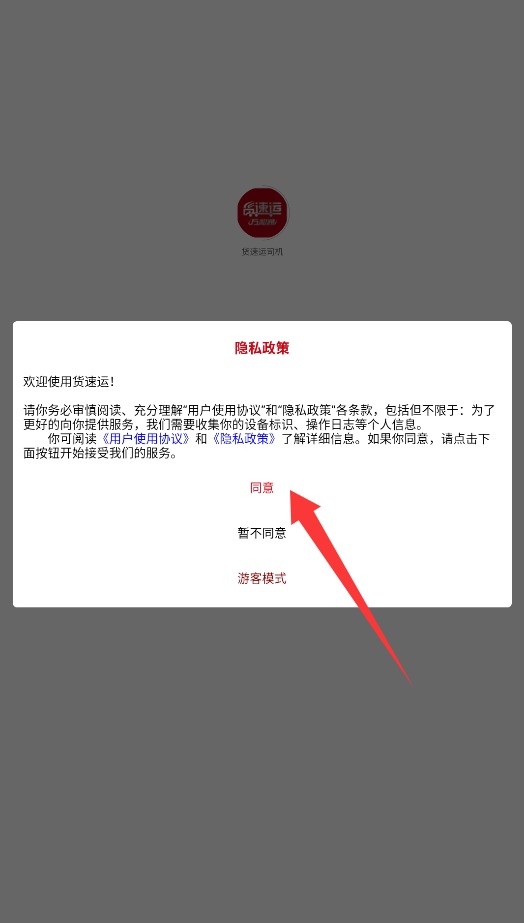 1. 首次使用APP,系统会呈现用户协议与隐私政策,认真阅读完毕后,点击同意按钮方可进入注册页面。
