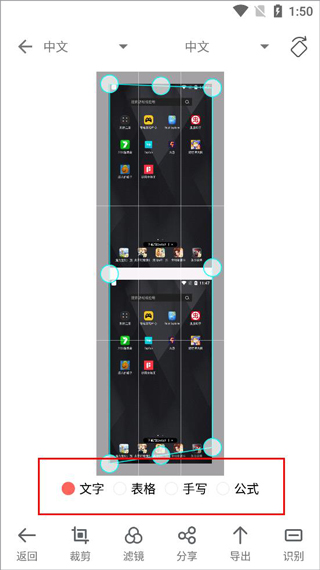 2. 打开照片后,可选择将其识别转换为文字、表格、手写内容或者公式。