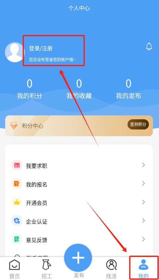 1. 开启工程e家软件,首先在界面中寻找到 “我的” 页面,点击该页面进入后,即可看见登录按钮。
