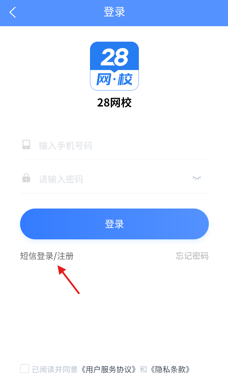 3、在登录页面的下方,找到“短信登录/注册”按钮,轻点该按钮,切换至注册入口。