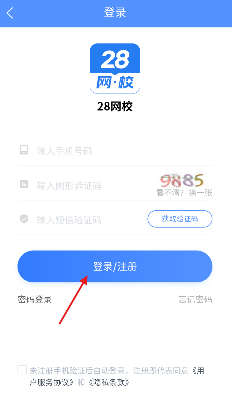 1. 首先解锁手机,接着在手机界面上找到28网校并将其打开,随后点击页面下方菜单栏里的“我的”选项。
