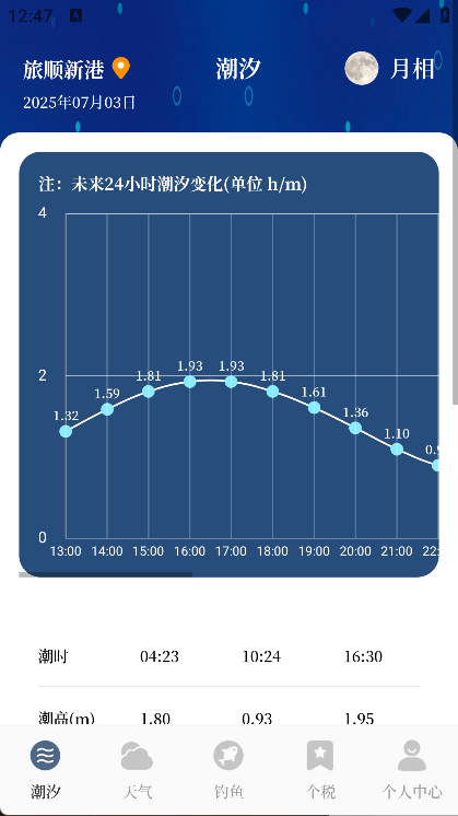 2. 多维度数据可视化:平台直观呈现潮汐曲线图、月相日历、风速风向图。