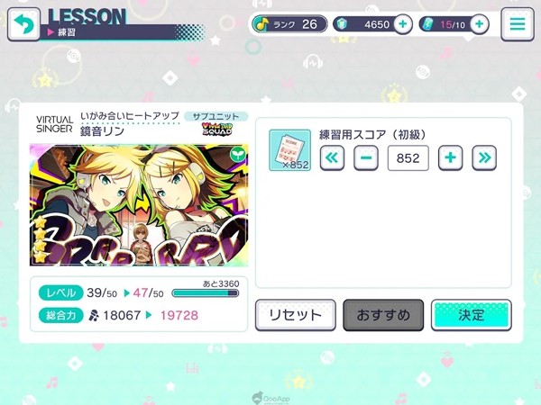 “练习”以及“特训”的素材,可以通过节奏游戏的部分获取。在单人模式里取得更高评级、游玩“挑战表演(チャレンジライブ)”,或者在多人游戏中达成“SUPER FEVER”,就能更轻松地获得稀有素材。