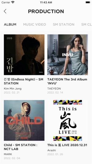 3、获取SM ENTERTAINMENT旗下歌手与演员的各类专辑以及相关信息。