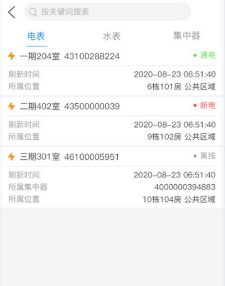 3、进入房源板块,查看各房间的到期时间以及水表、电表的数量信息,并远程抄表。