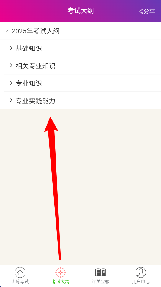2. 轻点“考试大纲”,即可查看基础、专业知识以及实践能力的考试范围。