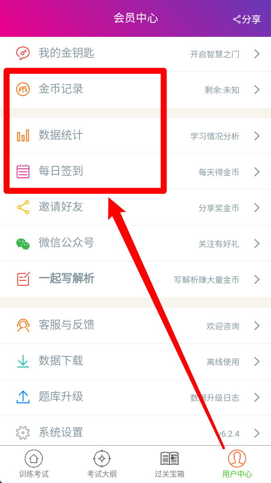 4、于“用户中心”内,能够查看金币记录、数据统计以及每日签到情况。