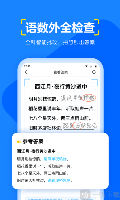 这款软件提供多种解题思路,方便用户及时理解。用户只需拍照上传至平台,软件就能智能自动批改计算题,无论是语文作业还是数学作业,都能快速完成批改,同时,用户还能更直观地了解作业完成情况。
