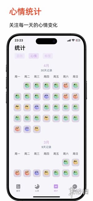 3、心情追踪功能借助直观的数据统计图表,助力用户记录并回顾自身情绪的变化轨迹。