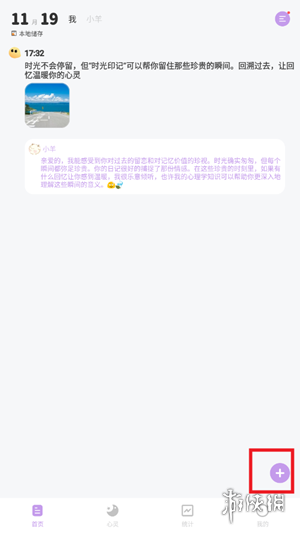 1. 开启时光印记应用程序后,轻点界面右下角的“+”按钮,随即开始记录。