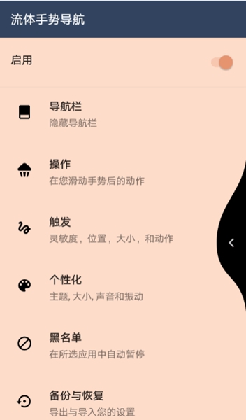 流体手势导航官网版下载,这是一款在手机上表现极为出色的辅助工具,能让大家对手机手势操作运用得更加得心应手。软件内所有手势均可自定义,可自由进行设置。在这里,你的手机你说了算,通过个性化设置,能够实现对手机更为完美的操控。该软件功能十分强大,喜爱这款软件的朋友可千万别错过哦。