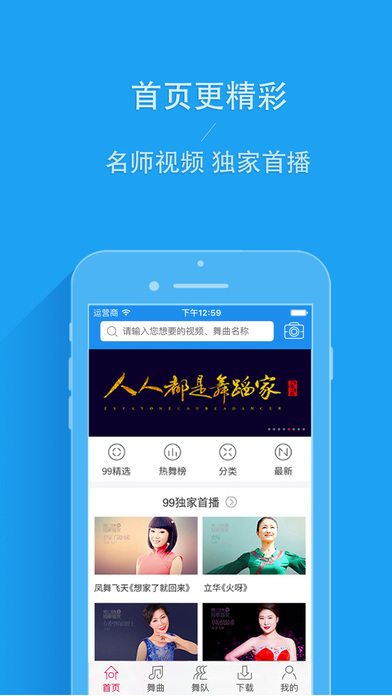 99广场舞平台为您呈现近百万热门广场舞视频,方便您观看与学习。同时,这里还有海量网络热门流行舞曲可供下载。平台汇聚众多广场舞名师资源,会定期发布新舞教学。不仅如此,还精心制作了《艺术周》《星舞访》等原创广场舞栏目,致力于为您打造与众不同的全新广场舞体验。