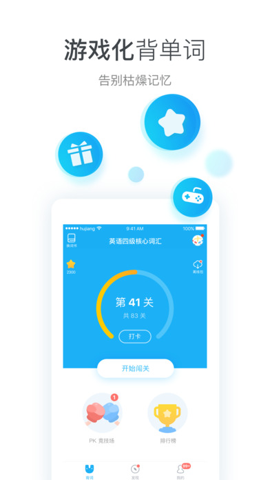 4、【闯关背词】:在游戏中轻松背单词,快乐收集词能量,还有各式各样丰富的闯关场景等你解锁。