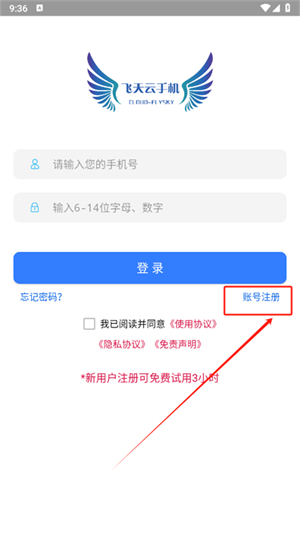 应用安装步骤:首先要安装红手指客户端(即飞天助手运行平台),新用户需点击“立即注册”,并填写账号相关信息。