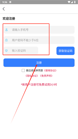 5、填入手机号、密码以及验证码等相关信息,随后点击“注册”按钮便可完成操作。