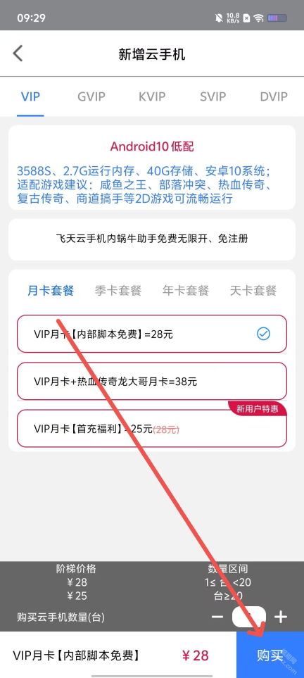 添加设备步骤如下:进入红手指操作界面,点击“+”即可添加云手机,接着挑选适配的配置,例如处理器、内存等相关选项。