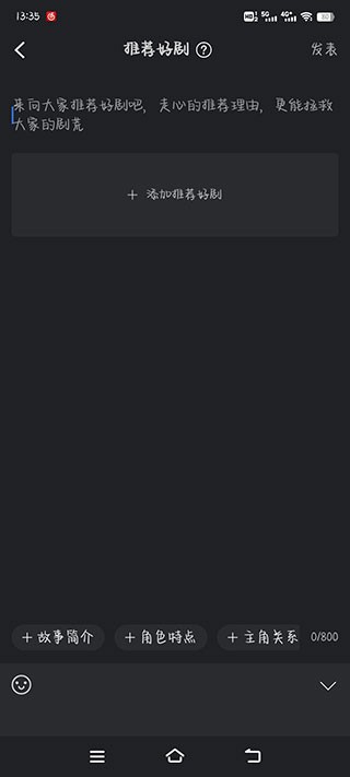 4、倘若你自己也希望发表作品,不妨点击“底部的推荐好剧”,进入编辑页面。这里设有故事简介、角色特点、主角关系等选项,能助力你更有条理地理清思路,撰写出优质的影评,从而收获点赞与支持。