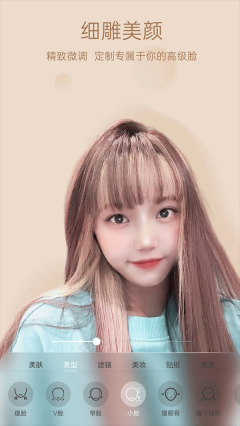 【质感细节】磨皮时悉心留存皮肤细节,杜绝假面感,呈现高级视觉效果。拥有丰富多样的美化功能,助你瞬间变身精致小仙女!
