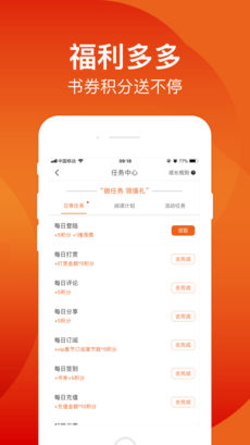 2、任务中心福利满满:完成任务提升等级即可赢取书券,每日任务更是惊喜不断。