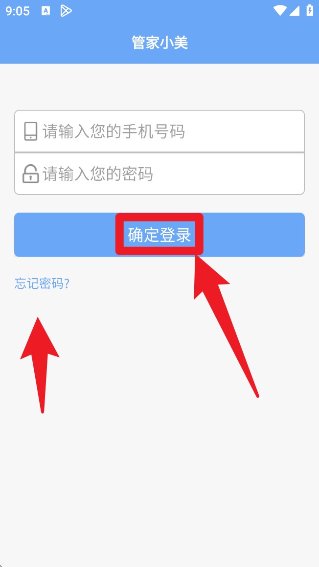 1. 打开App,输入手机号和密码,点击「确定登录」,就能进入管家小美系统的首页。