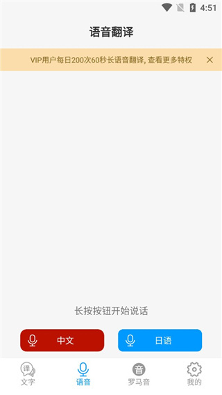 6、若要选择语音翻译,可长按相应语言按钮,通过说话实现翻译。