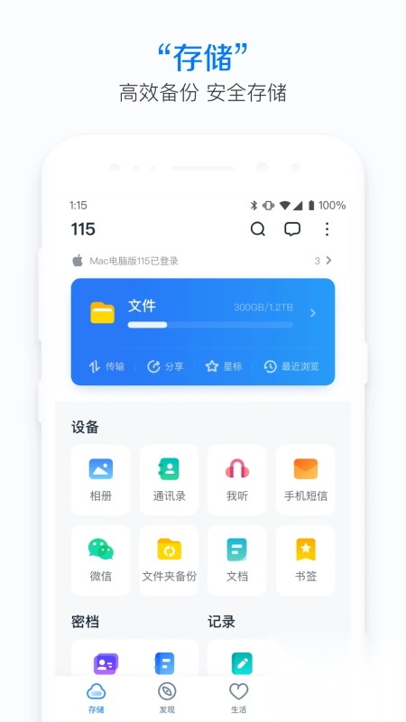 115网盘作为一款网盘应用,为用户带来涵盖文件、设备、密档、记录等方面的一系列智能且高效的数据存储以及记录管理服务。它具备海量且长期的存储空间,能让用户轻松存储一生的数据,而且无论何时何地,都能够对各终端的个人数据进行查看与管理。