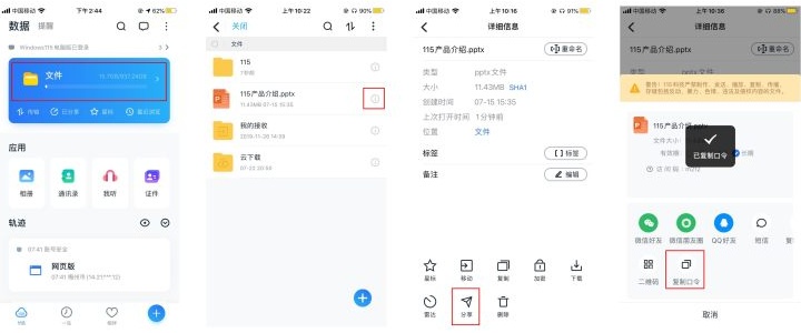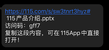 ③「口令分享」:让用户分享更便捷,复制口令后在「115App」中打开就能转存。