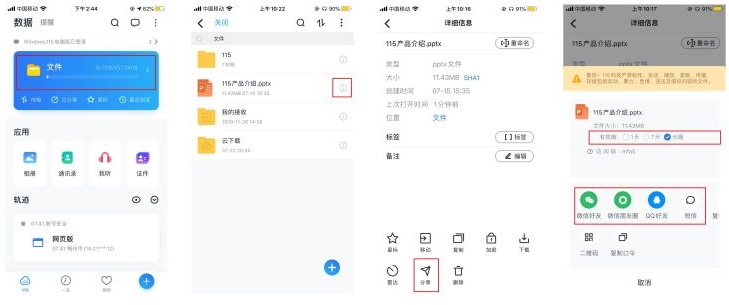①【大众分享】:所有115注册用户都能进行文件分享,用户能够把文件分享给来自不同平台(如微信、QQ)的好友。