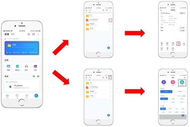2. 若存储于115的文件需与好友分享,115用户可借助「大众分享」、「雷达分享」、「口令分享」等途径,在115App或其他社交平台进行发送。接收分享的115用户能够直接「转存」,也可复制口令在「115App」中打开文件。