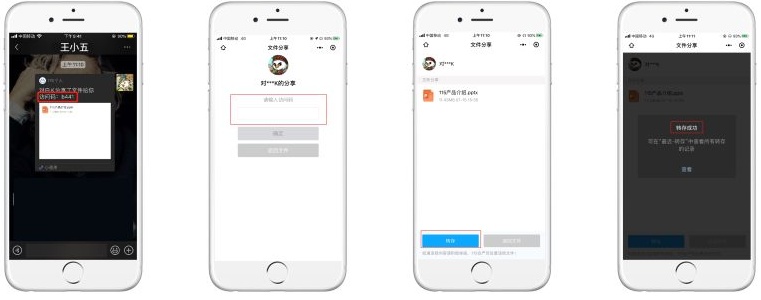 只需在好友的微信分享对话框中点击,接着输入访问码,就能查看好友分享的文件。