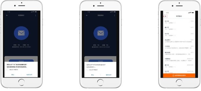 ③在删除广告短信时,可能会不慎将重要短信一同删掉,这种情况下,登录后选择对应已备份的短信就行。