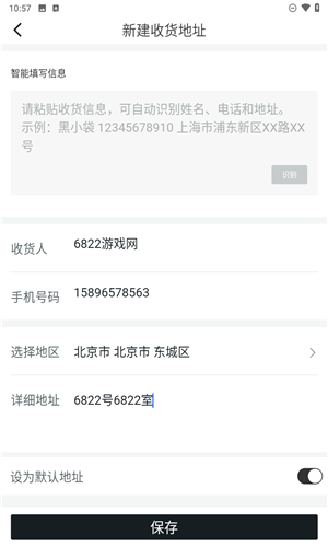 请新建个人收货地址,完成后点击“保存”即可。