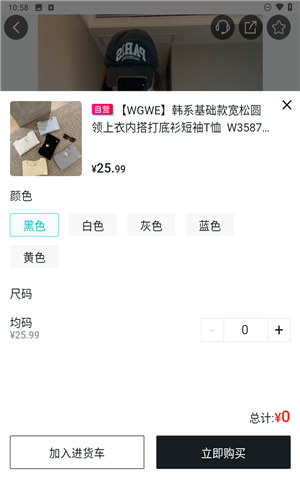 -挑选自己心仪的颜色、尺码,然后点击“立即购买”。