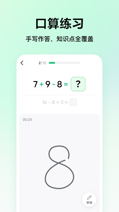 更具效率的心算练习,支持在线手写作答,系统自动评分,全面覆盖各年级知识点。