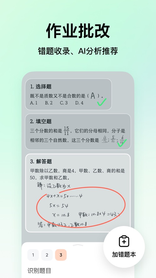 更全面的摄像头评分,涵盖家庭作业、论文写作、心算等多种评分场景。能更好地理解你的错题,支持轻松录入错题,借助人工智能筛选关键错题,精准攻克薄弱知识点。