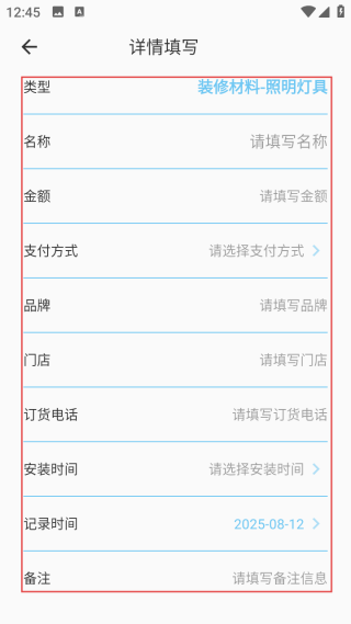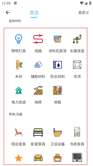 1. 预先设定涵盖全面的装修费用类别,能够精准契合各类支出情况。与此同时,还支持用户根据自身需求自定义新增类别,充分满足个性化的记账要求。