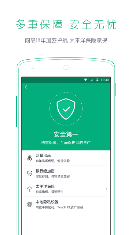 3、开机时,既支持手势密码,也支持Touch ID。资产信息可一键隐藏,即便手机不在身旁,也无需担忧隐私会泄露。