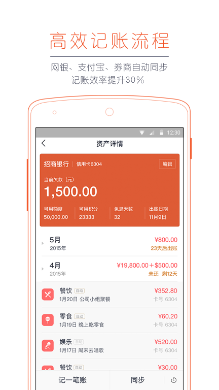 1. 信用卡、借记卡以及支付宝账单同步轻松搞定,一旦体验过自动记账,便难以再回归手动记账。
