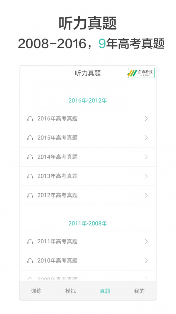 高考英语听力软件,精心汇聚了2008年至2019年的高考英语听力真题试卷,为广大用户准备了海量的高考英语听力学习资料。借助这款软件,用户能够随时随地进行听力练习,助力学习。软件不仅收集了历年高考听力真题,还涵盖模拟试题,并配备智能答案检测系统。学生通过持续的听力训练以及真题模拟,可有效提升自身听力水平与能力,从而更加从容地应对听力考试。