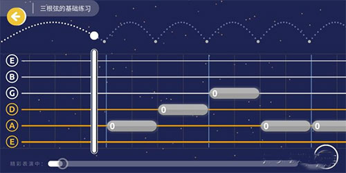 3、按照教程指示,把手指放置在相应的弦上,便可开启练习。