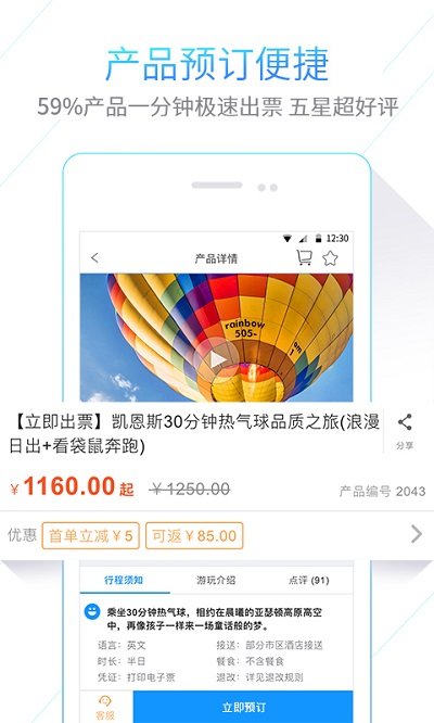 2、品质保障:96%的产品收获五星好评,59%的产品能够实现一分钟极速出票。