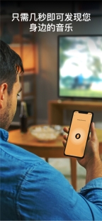 • 轻点橙色按钮,即可即刻识别歌曲,同步查看实时歌词。不仅如此,还能进行播放视频、分享、在线播放或购买等操作。