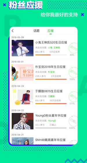 《爱奇艺泡泡圈》是一款专为饭圈小伙伴打造的手机社交聊天软件。借助这款软件,各大明星的粉丝们能够为粉丝见面会、明星演唱会等活动进行应援。它还能帮全国各地的粉丝找到同好追星社区,大家可以一起为心仪的偶像举办活动。感兴趣的小伙伴们,快来体验吧!